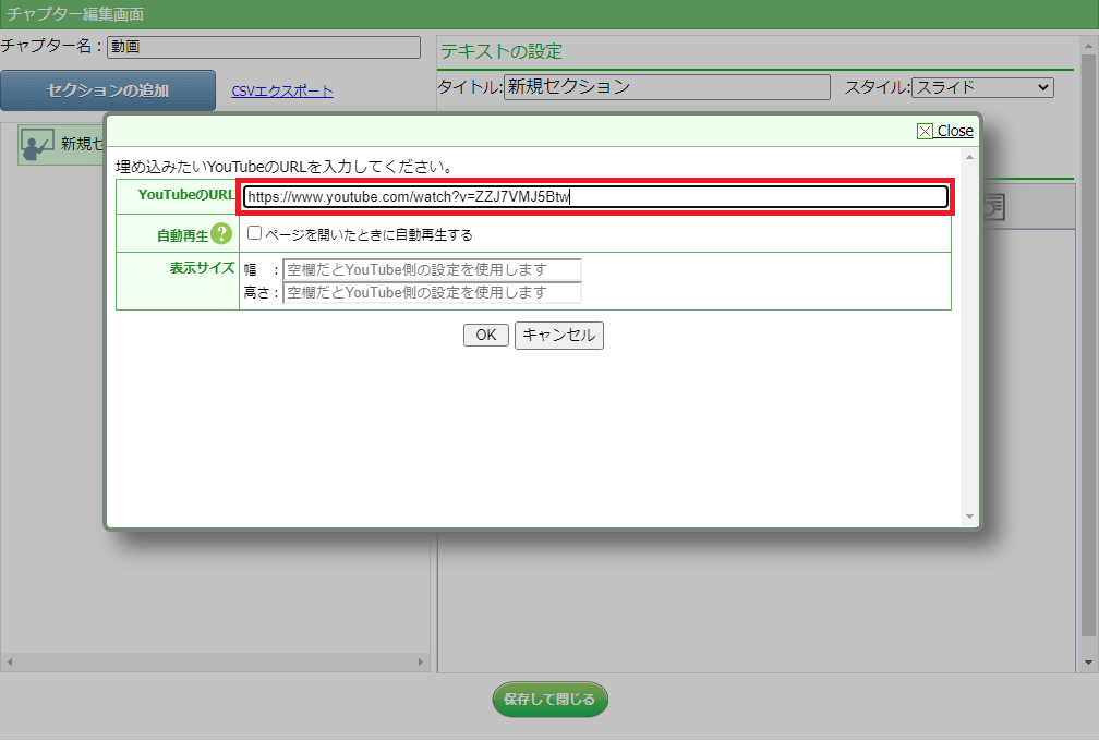 STEP5:埋め込みたいYoutubeのURLを入力する