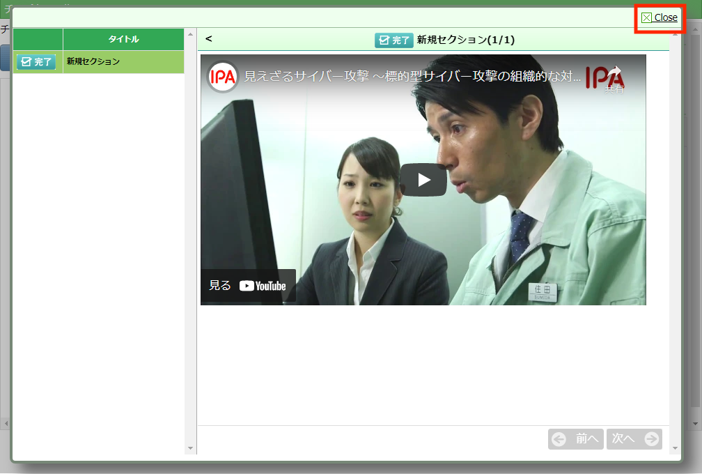 また、YouTubeの埋め込み時でも、動画を最後まで視聴しないと学習完了にならないように設定することもできます。(設定については動画を最後まで視聴しないと学習完了にならないように設定するをご参照ください。)
