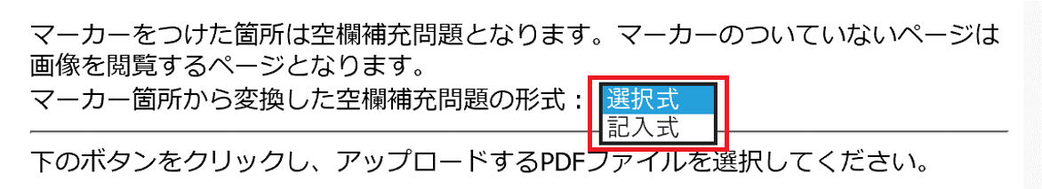 プルダウンメニューで、空欄補充問題のタイプを選ぶことができます。