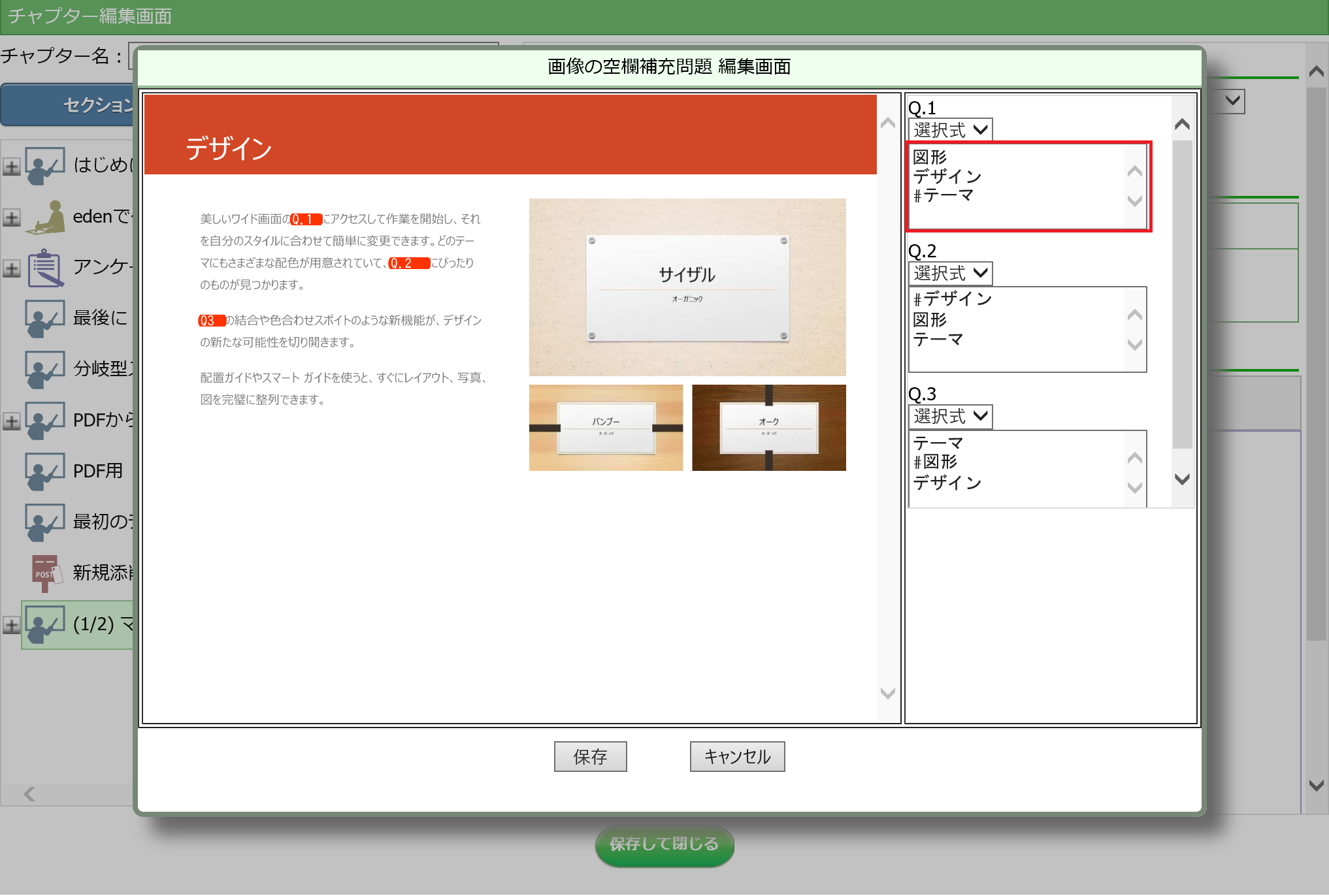 選択肢を変更したい場合には、「画像の空欄補充問題」をダブルクリックします。
