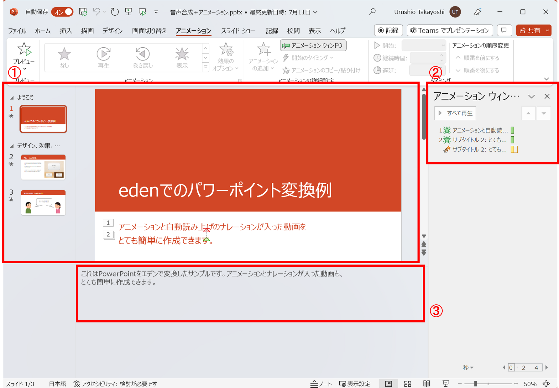 edenの機能を利用して、パワーポイントを元に動画を作成する